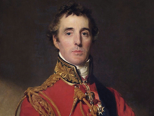 The Duke of Wellington is standing at half-length, wearing Field Marshal’s uniform, with the Garter star and sash (image cropped). Image credit: Thomas Lawrence, Public Domain, via Wikimedia Commons