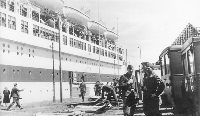 German soldiers wounded at Narvik, Norway, are transported back to Germany on the Wilhelm Gustloff in July 1940. Credit: Bundesarchiv, Bild 183-L12208 / CC-BY-SA 3.0