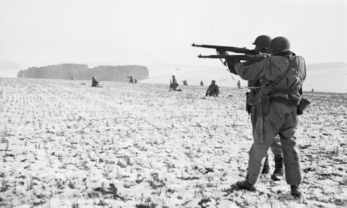 US soldiers taking up defensive positions in the Ardennes.