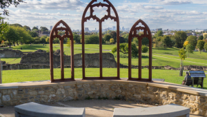 The plaque commemorating the place of the Swindlestock Tavern, where the altercation between the students and landlord occurred on 10 February 1355. Credit: Tony Holding / Commons.