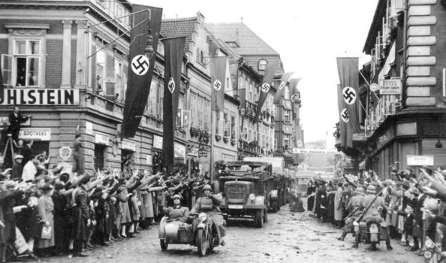 Featured image credit: Ethnic Germans in Saaz, Sudetenland, greet German soldiers with the Nazi salute, 1938. Bundesarchiv / Commons.