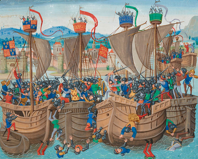 These were not trivial episodes. They could be extremely destructive. For example in 1339 when the French fleet, accompanied by allies from Genoa and Monaco rowing Mediterranean oared galleys, made their way up the Solent, and landed in Southampton, they killed civilians, and looted the entire city taking away valuable goods such as wine and wool from the merchants’ cellars.