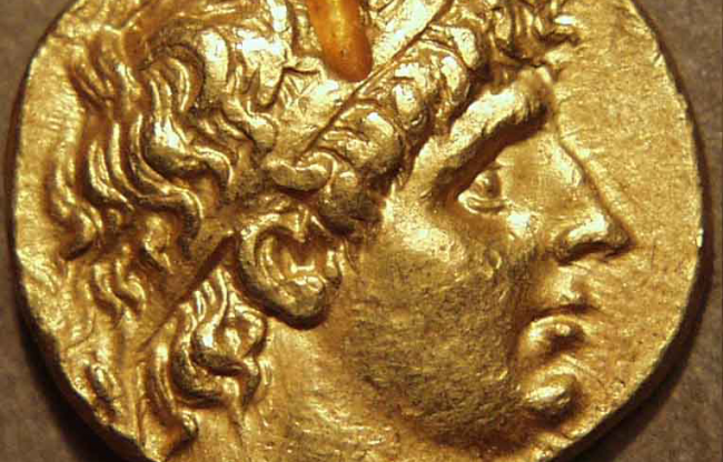 Featured image credit: Gold stater of the Seleucid king Antiochus I Soter minted at Ai-Khanoum, c. 275 BCE. Obverse: Diademed head of Antiochus. Rani nurmai / Commons.