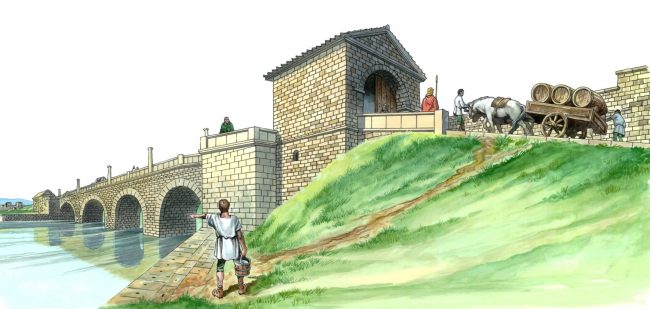 When Julius Caesar looked to cross the Rhine with his legions, he decided to construct a wooden bridge. This military manoeuvre caught the German tribe’s unready and, after showing the German tribes what his engineers could do, he withdrew and had this pontoon bridge dismantled.